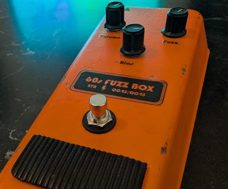Controls: Volume, Pre-Gain (Input Trim/Fuzz intensity), and Bias (Transistor voltage).
