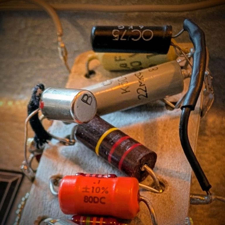Here, I don't take shortcuts. By painstakingly audition and bias every transistor trio by ear. Mostly using period correct NOS components, often including the coveted OC-series transistors and vintage capacitors, to ensure your pedal sounds as good as possible.